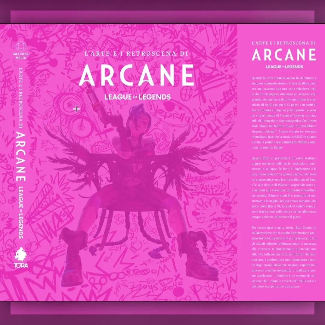 Riot Games, Fortiche, Melcher Media e Tora Edizioni uniscono le forze con Insight Editions e pubblicano L’arte e i retroscena di Arcane, un volume che racchiude la genesi artistica e narrativa della serie animata vincitrice di un Premio Emmy basata su League of Legends e creata da Riot Games e dalla famosa compagnia di animazione Fortiche Productions.