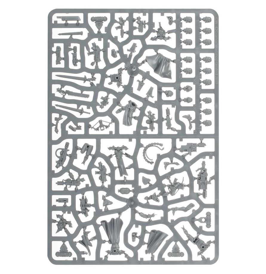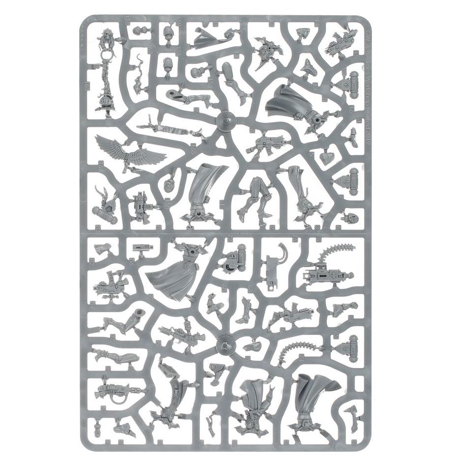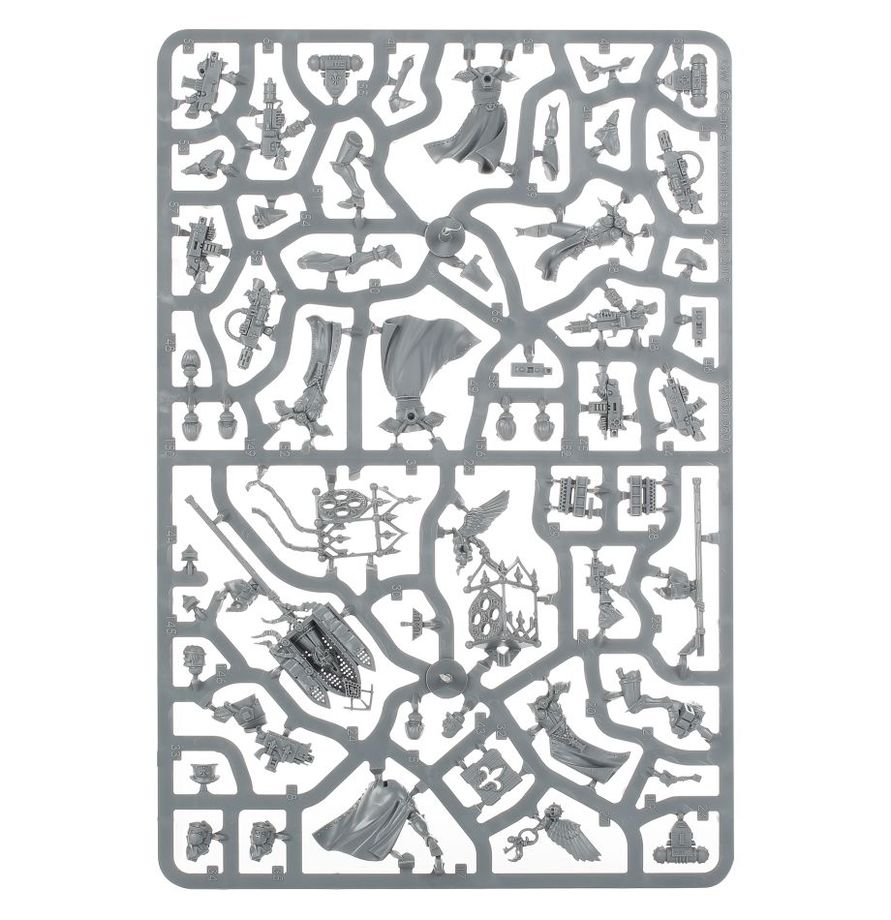 Il kit è formato da 179 componenti di plastica ed è fornito con 10x basette Citadel rotonde da 32mm, 1x basetta Citadel rotonda da 25mm e un foglio di trasferibili dell’Adepta Sororitas. Le miniature devono essere assemblate e dipinte: consigliamo l’utilizzo della colla per plastica Citadel e dei colori Citadel Colour.